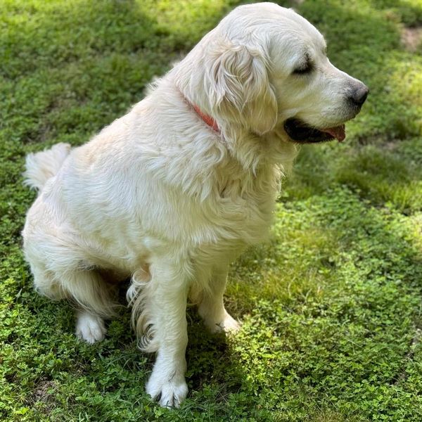 Jolene is a beautiful 4-year-old white English Cream Golden Retriever with a proven track record of healthy litters. Perfect Embark Clear genetics and OFA certified hips, elbows, eyes, and heart.